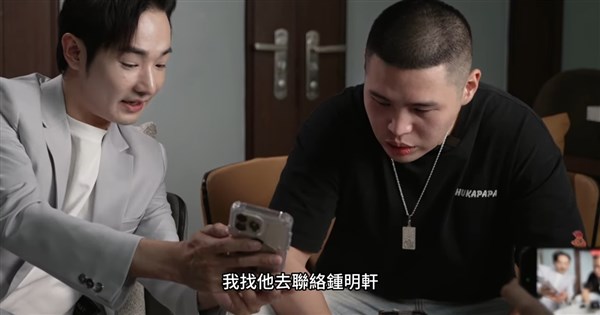 網紅八炯(左)找歌曲「中國老總」原唱陳柏源(右)拍片揭發中國如何收買台灣網紅,聯絡中國媒體「海峽導報」,對方稱能聯繫網紅鍾明軒。(圖取自攝徒日記Fun TV YouTube頻道網頁youtube.com)
