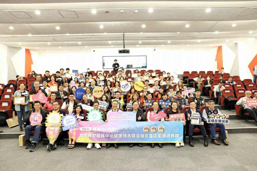 因應全球景氣變化影響及低碳化國際趨勢,桃園市政府今(113)年首度推出商業轉型服務輔導計畫,成立「桃園市商業轉型服務中心」,致力於協助桃園市業者就數位力、品牌力及永續力轉型。第一年即有10家業者取得中央政府資源補助成功轉型,於12/6日舉行「商業轉型服務中心成果發表暨星級友善店家頒證典禮」頒發榮譽錦旗,同時現場也頒發113年度星級友善店家認證證書,表彰通過認證的友善店家,進一步促進地方商業活化,並提升星級友善店家服務品質。