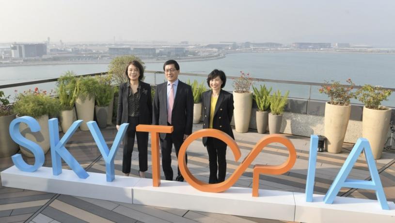 機管局主席林天福致詞時表示,機管局公布機場城市發展藍圖,並命名機場城市的品牌為「Skytopia」 。他提到,過去香港國際機場聚焦發展三跑系統,現時三跑落成,預料長遠可以應付1.2億旅客及1千萬噸貨物,有助推動機場成為全球其中一個最大的空運中心。