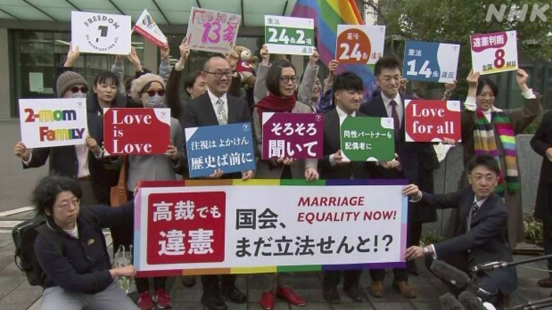 日本福岡市和熊本市共3對同性伴侶對政府提告,主張《民法》等相關法律不承認同性婚姻的規定違憲,請求每人100萬日圓(約21.2萬元台幣)之損害賠償。福岡高等法院今天(12/13)宣判,相關法律違憲,但駁回損害賠償之訴。