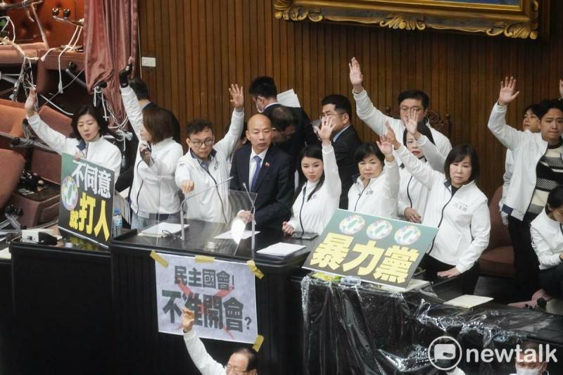 立法院院會昨(20)日上午經過朝野激烈衝突後,表決選罷法修正案等三大爭議法案,國民黨和民眾黨以人數優勢舉手表決通過選罷法修正案。 圖:張良一/攝