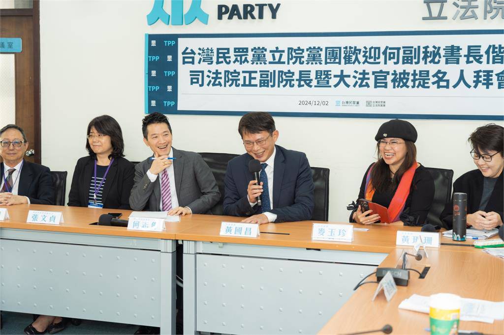 由於總統府秘書長潘孟安陪同總統賴清德出訪南太友邦,副秘書長何志偉今(2)日上午偕司法院正副院長被提名人張文貞、姚立明與大法官被提名人拜會民眾黨立法院黨團,何副秘書長表示,大法官同意權投票即將在24日登場,期盼白委能多多支持;而白營總召黃國昌則說,會秉持理性、務實的態度嚴審。