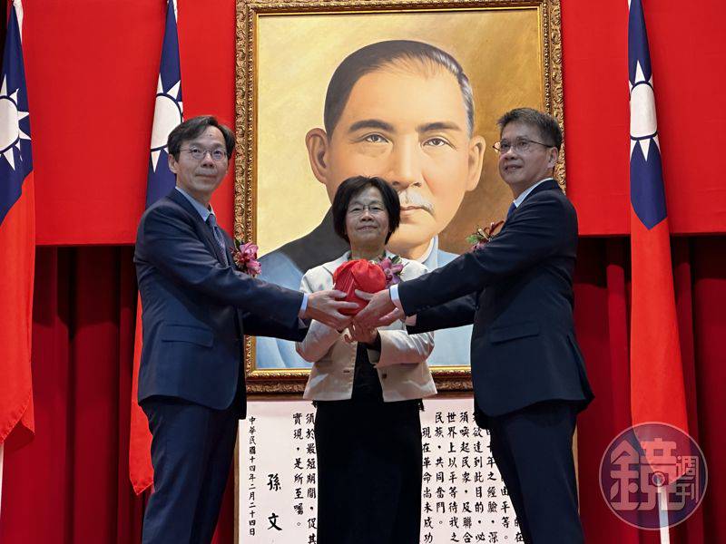 台北地院新任院長何信慶(右)今正式上任,從監交人高等法院院長高金枝(中)台北地院代理院長黃柄縉(左)手中接下印信。